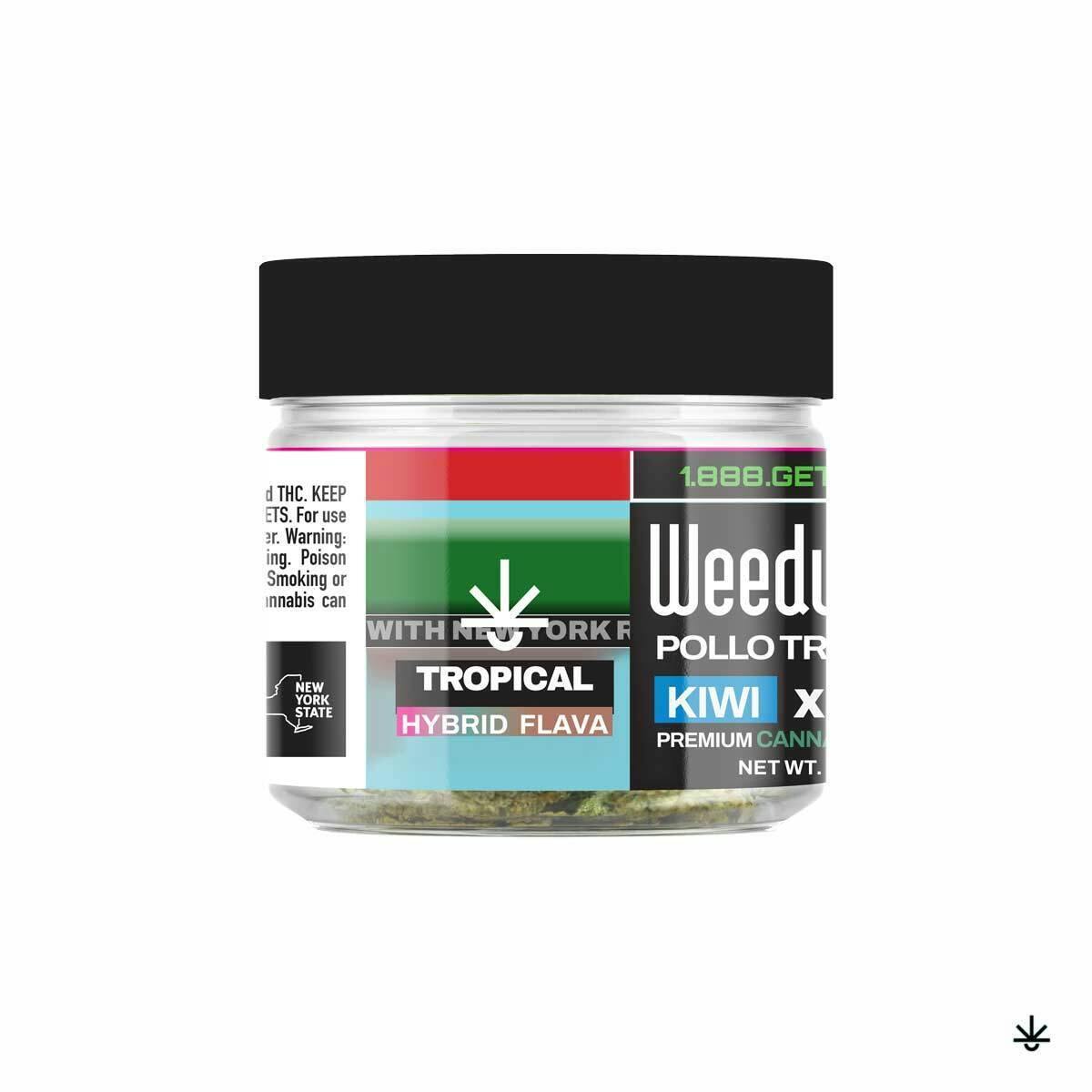 Weedubest’s POLLO TROPICAL is a vibrant hybrid strain born from crossing Kiwi and Lemon Cherry Gelato. This exotic blend delivers a well-balanced high that many users describe as uplifting and blissful yet soothing.