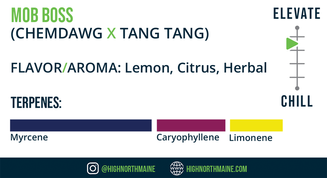 Mob Boss is a hybrid strain first developed by the cultivators at Grindhouse Medical Seeds in 2009. The team crossed a stabilized Chemdawg female, obtained from the original Chemdawg breeder, with a Tang Tang male, an in-house descendant of Blue Sonja, to produce highly resinous, compact buds. Consumers report that Mob Boss isn’t the best strain for beginners to try, as the effects glide from a rush of mental effects to a sedative end state.