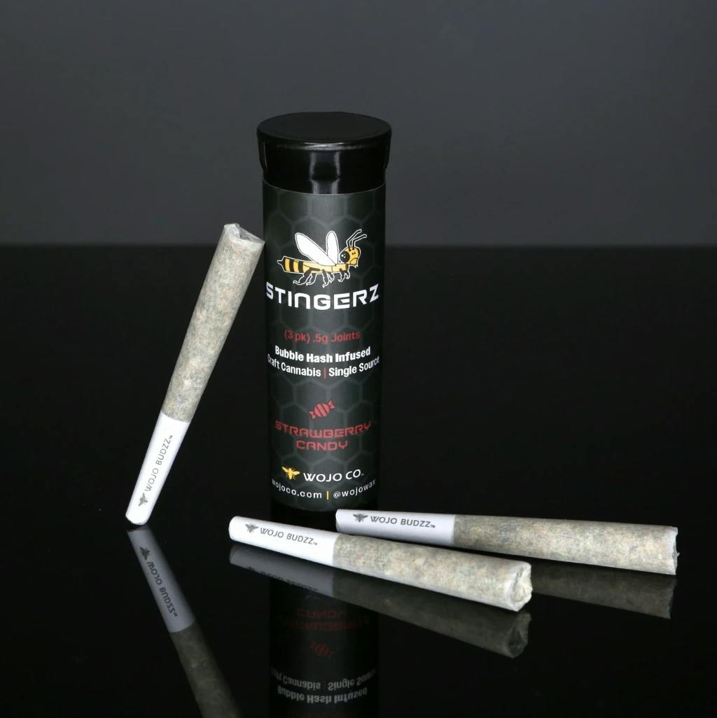 Experience the unmatched potency of Stingerz, Wojo Co’s premium pre-rolls crafted for Michigan’s cannabis enthusiasts. Each joint in this convenient 3-pack is infused with top-grade bubble hash, delivering a robust and flavorful smoke that stands out among pre-rolls here in Michigan. Designed for both potency and quality, each 0.5-gram joint provides a smooth, consistent burn that enhances the natural terpenes and effects of our carefully selected strains.