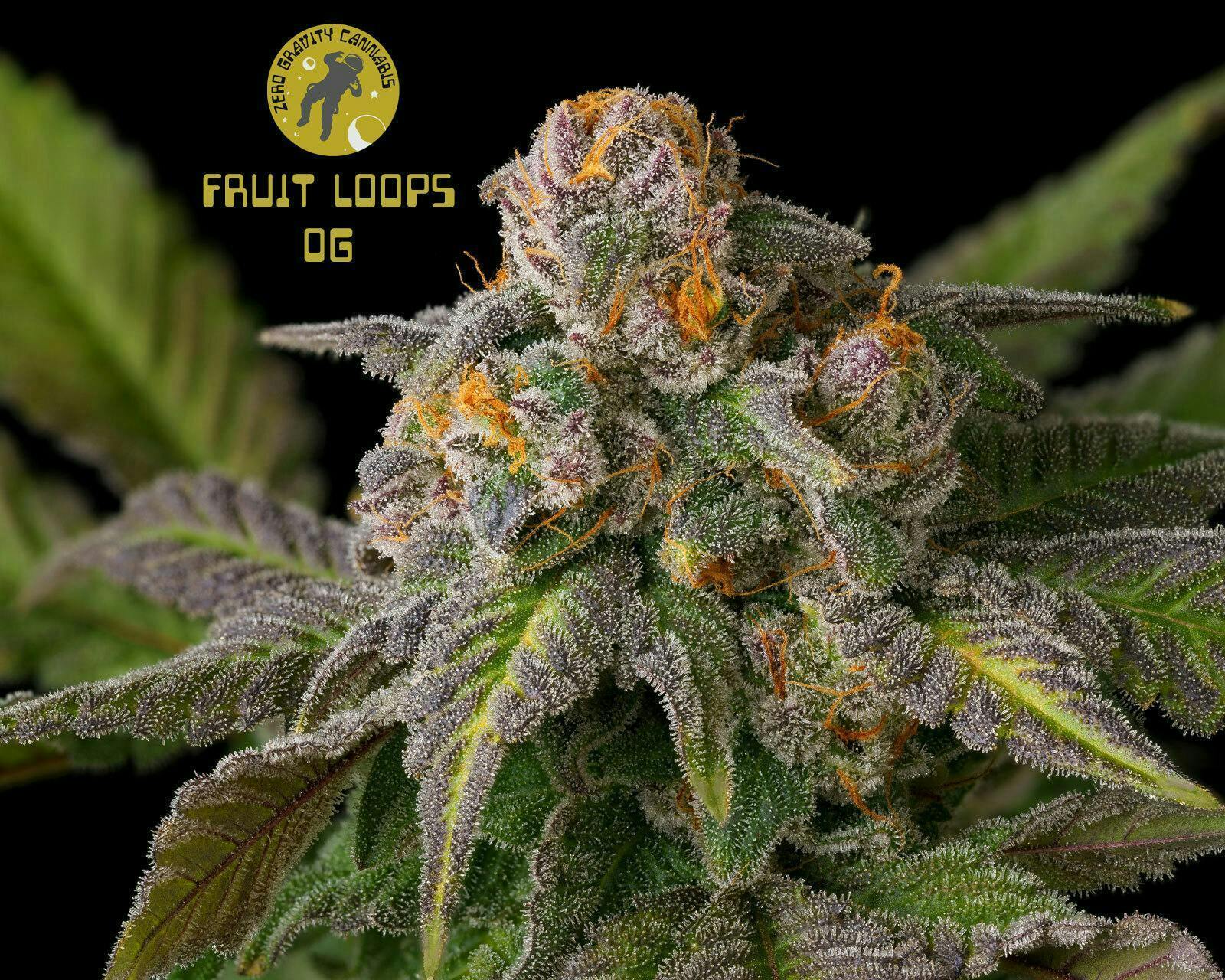 Fruit Loops is a strain of unknown origins, thought by online sources to be a four-way cross of Blue Dream, Blueberry, Grapefruit, and White Widow. It tastes sweet and spicy with an earthy, tropical aroma. Fruit Loops grows short and bushy with dense bud structure.