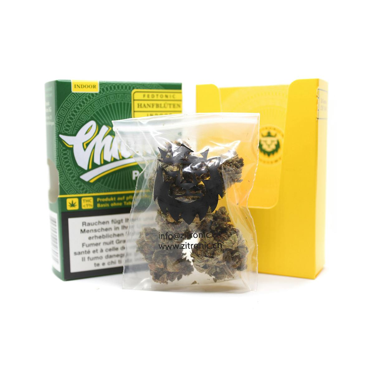 Das Produkt besteht ausschliesslich aus handerlesenen, Samenlosen Cannabisblüten, die frei von Stängeln und Blättern sind.