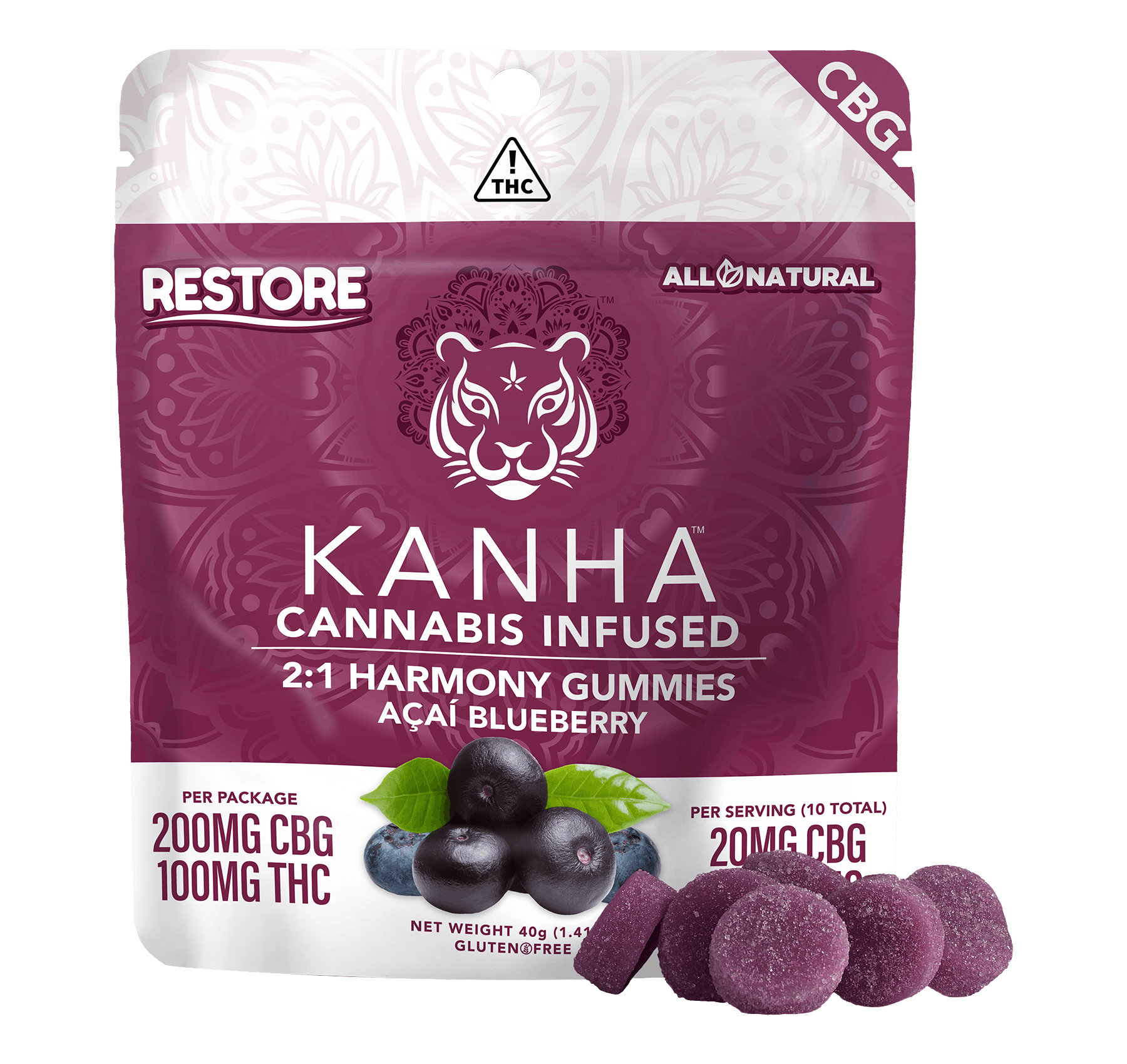 KANHA | Harmony | 2:1 CBG:THC | Açaí Blueberry | 200mg CBG/100mg THC