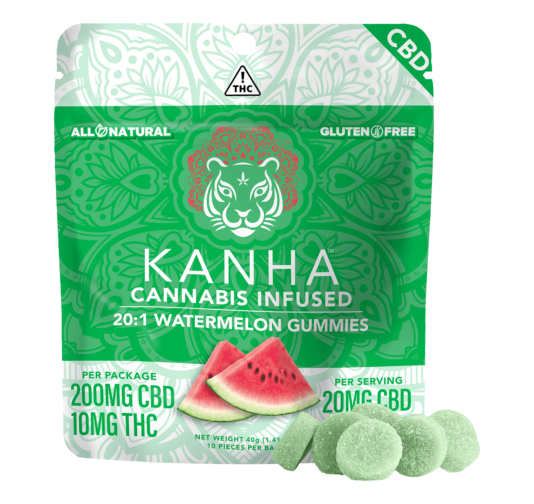 KANHA | 20:1 CBD:THC | Watermelon | 200mg CBD/10mg THC | 10-pack