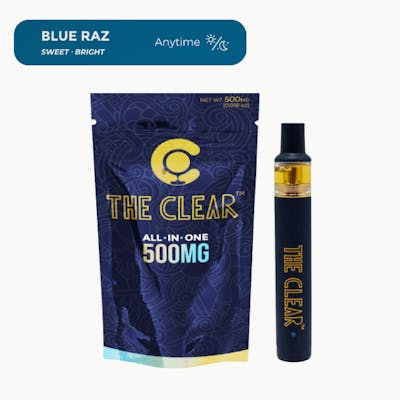 Total Terpene Content: 0.10% Caryophyllene oxide: 0.05% beta-Caryophyllene: 0.03% alpha-Humulene: 0.02% Blue Raz is a staple of The Clear that contains a bright, sweet and jammy profile. This unforgettable flavor is juicy, tangy, and sweet, and is known for delivering refreshed, happy anytime hybrid effects. The Clear’s Blue Raz is presented in an All-In-One vape, a discreet pocket-sized vaporizer that requires no battery and is ready to use right out of the packaging.