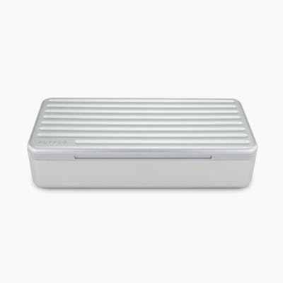 Compatible with: PuffCo Pivot The Travel Case keeps your stash organized. Featuring a ridged hard aluminum exterior with a magnetic lid closure and soft silicone inside to reduce rattling, the Travel Case has room for a Pivot + Hot Knife, up to 3 jars, cotton swabs, a covered section for trash, and anything else you might need. ** DOES NOT INCLUDE PRODUCTS SHOWN IN TRAVEL CASE ** Pack Size: One (1) Travel Case Dimensions: 7.6" x 3.5" x 1.7" Material: Aluminum Exterior Four (4) Interior Compartments Noise Reducing Silicone Interior Space for up to 24 Swabs Covered Compartment for Dirty Swabs Magnetic Closure