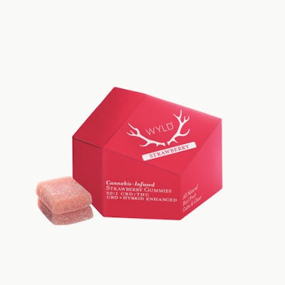Wyld Strawberry gummies offer the relaxing effects of CBD enhanced with a gentle dose of THC. 20mg CBD:1mg THC per gummy 200mg CBD:10mg THC per container 10 gummies per package