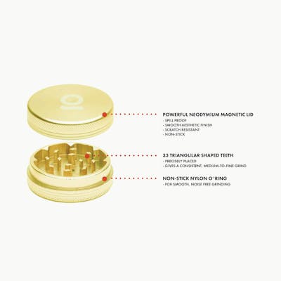 Crafted out of solid, aircraft-grade aluminum, our ONGROK 2-piece grinder is almost indestructible. With 26 triangular shaped teeth, this grinder provides a medium-to-fine grind, every time. Pocket-sized design A neodymium magnet keeps the lid securely in place Flake resistant finish