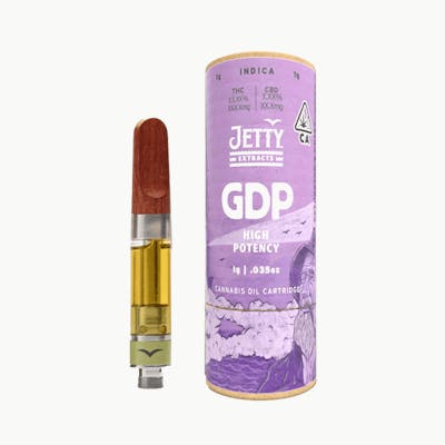 GDP is a classic NorCal strain. It’s a potent, pure, heavy indica that will surely have you couch-locked. Good earthy flavor with hints of citrus fruit and spice. Jetty HIGH THC is super-potent and features a variety of legendary cannabis strains. Jetty HIGH THC is triple-tested and made in our Oakland lab using an exclusive cannabis terpene blend. Premium cartridge with Jetty signature wood tip. Works with any 510-thread battery.