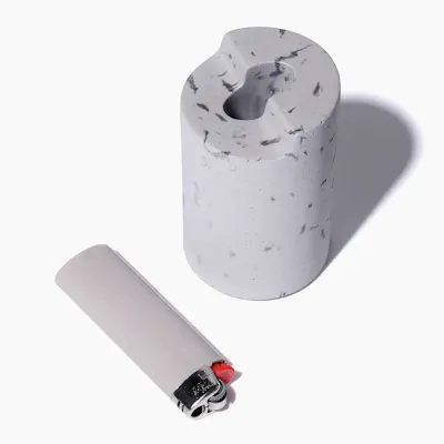 The Anchor is a faithful protector of your favorite flame and an essential component of every greenware collection. Embracing the refinement of vintage houseware and the stylish stability of marbled concrete, the anchor keeps most standard full-sized pocket butane lighters secure and easy to locate anytime you’re in need of a light. Material: Hand Poured, Marbled Concrete Dimensions: Size: 3.4" x 2.1" Lighter Slot: 1" x 0.6" x 3" (Made to fit standard BiC Lighter) Packaging Size: 4.75" x 3.25" Includes: 1 x Anchor Concrete Lighter Holder
