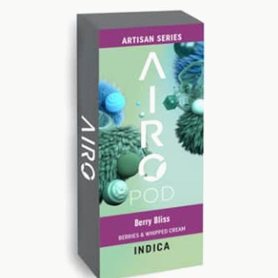 Grant yourself serenity with Artisan Series Berry Bliss. As you inhale, treat yourself to the sweet tastes of berries and whipped cream dessert as you feel peace-of-mind wash over. As you exhale, delight yourself with pleasure as aromas of fresh dessert fill the air. Quiet your mind and feel relief as you sink into your evening for some after-dinner chill time. This Indica brings you tranquil reflection and placid logic. -- Our Artisan Series, made from purified cannabis oil, is our exclusive fusion of trademarked tastes, derived 100% from naturally occurring botanical terpenes. Arouse your palate with vapor full of colorful fruit, floral, and savory notes. Inhale for enticing tastes, and exhale to fill the room with sensational aromas. -- AiroPod Cartridges are only compatible with the AiroPro and AiroSport Vaporizer.