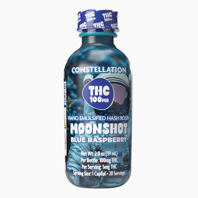 Constellation’s Blue Raspberry Moonshot is a supernova of berry flavor for those who appreciate the tried and true classics. Crafted with 100mg of nano-emulsified hash rosin, the effects hit fast, so you chill, sip, and launch into orbit.
