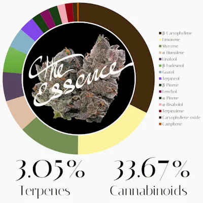 The terpene profile of this Dosilato strain presents a complex and potent chemistry designed for deep physical relaxation and a clear, uplifted headspace. Beta-Caryophyllene stands as the most abundant terpene, which may provide a soothing, grounded sensation throughout the body. Because this molecule interacts with the body's internal receptors, it could offer significant relief for physical tension or discomfort, potentially helping the consumer feel physically eased without heavy mental cloudiness. Limonene follows closely, adding a bright, citrusy element to the experience that may act as a mood elevator. This presence could help balance the heavier physical effects of the strain, potentially promoting a sense of mental clarity and stress relief that might leave the user feeling more buoyant and emotionally resilient. Myrcene contributes an earthy, musky undertone that may enhance the overall calming nature of the profile. This terpene is often associated with a "couch-lock" sensation, meaning it could potentially help the consumer transition into a state of deep tranquility and physical stillness, making it a possible choice for evening unwinding. Alpha-Humulene provides a woody, hoppy aromatic layer and may offer its own unique benefits for physical comfort. It is often recognized for potential anti-inflammatory properties, which could complement the effects of caryophyllene to potentially help soothe the body after a long day of activity or exertion. Linalool adds a delicate, lavender-like floral note that may promote a profound sense of serenity. This terpene is widely regarded for its potential to quiet a racing mind and foster a gentle, sedative environment, which could be particularly helpful for those looking to drift into a peaceful state before sleep. Beta-Eudesmol, though less common in many profiles, adds a unique sesquiterpene finish to the top six. This compound may provide neuroprotective benefits and could potentially stimulate a healthy appetite, helping to round out a comprehensive experience that may leave the consumer feeling both physically restored and mentally at peace.