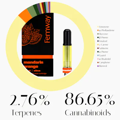 The terpene profile of this Mandarin Orange strain offers a vibrant and bright sensory experience that mimics the zest of freshly squeezed citrus. This profile is designed to provide a refreshing mental lift, potentially helping to sharpen focus and enhance one’s mood throughout the day without heavy physical weight. Limonene acts as the primary driver in this blend, which may contribute to an elevated mood and a sense of stress relief. This terpene is often associated with a bright, sunshine-like energy that could help ease social anxiety and promote a more positive outlook during daily activities. The presence of alpha-phellandrene may further complement this energizing effect. This less common terpene is often researched for its potential to boost energy levels and provide a slight cooling, minty undertone to the flavor, which could help combat feelings of lethargy. Myrcene is included in a secondary role, where it may offer a subtle layer of physical relaxation. In this specific concentration, it might help ground the more stimulating terpenes, potentially providing a "mellowing" effect that could keep the experience from becoming over-stimulating. Beta-pinene contributes a crisp, woodsy aroma that may support mental clarity and alertness. This terpene is frequently cited for its potential to help retain focus and counteract some of the short-term memory fog that sometimes accompanies high-potency cannabis oils. Linalool adds a soft, floral touch to the profile, which may introduce a calming influence on the nervous system. Even in smaller amounts, it could help soothe the mind, potentially making the overall experience feel more balanced and serene rather than just purely energetic. Finally, 3-carene rounds out the top six terpenes and may offer unique benefits related to physical comfort. This terpene is sometimes noted for its potential to assist with bone health and its ability to help dry out excess fluids, which could be beneficial for those seeking a "clearer" respiratory feeling.