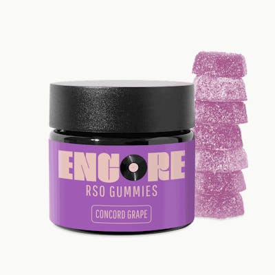 Profile: Sweet, Grape, Tart Encore RSO Gummies in Concord Grape flavor combine the robust benefits of Rick Simpson Oil (RSO) with the bold, sweet, and slightly tart taste of concord grapes. These gummies are perfect for consumers seeking a potent, full-spectrum experience that delivers effective relief for pain and stress. With each gummy infused with a precise dose of RSO, they offer a flavorful and therapeutic option for both medical and recreational users, making them a popular choice for relaxation and wellness.
