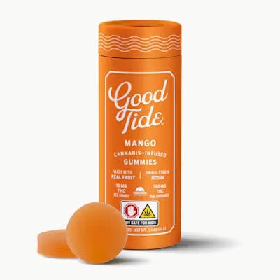 Strain: Slurricane. 10 pieces per container. Vegan. Ingredients: Sugar, Tapioca Syrup, Water, Mango Juice Concentrate, Natural Flavoring, Pectin (Pectin, Sodium Citrate), Coconut Oil, Cannabis Extract, Citric Acid, Malic Acid, Carnauba Wax, Sunflower Lecithin, Fruit and Vegetable Juice (Color).