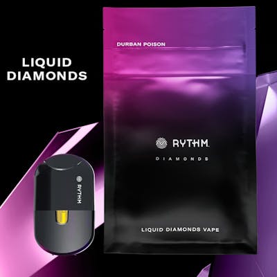 POTENT. FLAVORFUL. PURE. Featuring liquified live THCa crystals and 100% natural terpenes, RYTHM Liquid Diamonds Vape is all about powerful potency, intense flavors and peak purity—clarified to perfection. A sativa-dominant strain with a complex blend of lemon, sweet, earth and pine flavors, Durban Poison is known to keep energy sparked. Powered by sleek, rechargeable All-in-One disposable hardware. • Strain type: Sativa dominant • Potential effects: Invigorating, energetic, uplifting • Dominant flavors: Citrus, sweet, earth, pine • USB-C Rechargeable Vape Pen