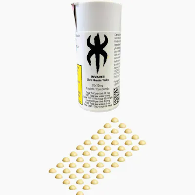Pressed tablets crafted with 100% solventless INVADER Live Rosin, delivering precise, discreet, full-spectrum dosing.