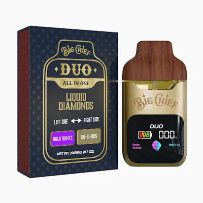 Big Chief Duo Bolo Runtz x Dosidos combines two premium strains in one sleek disposable, delivering rich terpene flavor, smooth hits, and potent, long-lasting effects for an elevated vaping experience - DUO Liquid Diamonds AIO
