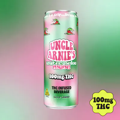 Packed with 100mg of THC in every 12oz can, Uncle Arnies is a trip worth taking man.... The #1 selling Cannabis-Infused Beverage in CA, there's good reason it's flying off the shelves. Pop open a beach chair, because Uncle Arnie is ready to transport you to paradise with Watermelon Wave. Crafted with fresh-pressed flavor, Watermelon Wave is fantastic on a hot day.