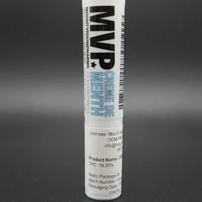 MVP – Crème De Menth – 2PK – 0.5GCool, creamy, and refreshingly smooth, MVP Crème De Menth Pre-Rolls deliver a unique flavor-forward smoking experience in a convenient 2-pack of 0.5G pre-rolls (1G total). Perfect for quick sessions, these mini pre-rolls offer consistent burn, easy use, and premium quality in every roll.Crème De Menth features a distinctive terpene profile with notes of cool mint, creamy vanilla, light chocolate sweetness, and subtle earthy undertones. The inhale is crisp and refreshing, while the exhale leaves a smooth, dessert-like finish with a minty twist.Effects are balanced and calming, starting with a gentle cerebral uplift that clears the mind and enhances mood. A relaxing body sensation follows, keeping the experience smooth and functional without heavy sedation.Highlights:Product: Pre-Roll PackBrand: MVPSize: 2 × 0.5G (1G total)Strain: Crème De MenthType: HybridFlavor Profile: Mint, vanilla cream, light chocolate, earthinessEffects: Relaxing, euphoric, balancedIdeal for: Quick sessions, unwinding, unique flavor loversMVP Crème De Menth 2PK (0.5G each) delivers cool minty flavor, smooth smoke, and balanced effects in a convenient, ready-to-enjoy format.