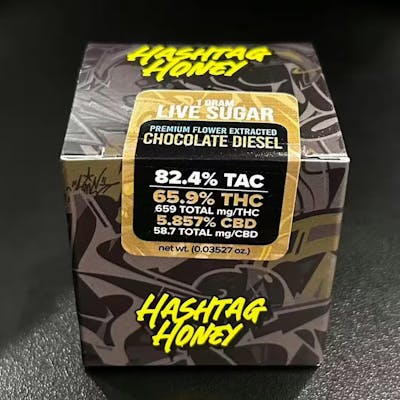 Hashtag Honey – Chocolate Diesel – Live Sugar Wax – 1g – HybridPremium Cannabis Concentrate | Cannabis Realm of NY – Hudson ValleyUncover bold flavor and balanced effects with Hashtag Honey’s Chocolate Diesel – Live Sugar Wax, a 1g hybrid concentrate that delivers powerful potency and rich terpene content. Extracted from fresh-frozen cannabis, this live sugar wax captures the full aroma, flavor, and essence of the original strain for an authentic experience that satisfies both flavor chasers and effect seekers.Strain Profile: Chocolate Diesel (Hybrid)Chocolate Diesel is a unique hybrid known for its sweet cocoa aroma blended with sharp diesel notes, creating a one-of-a-kind flavor profile. The effects are equally distinct—uplifting, energizing, and mentally stimulating, followed by a gentle body relaxation that won’t weigh you down.Product Highlights:Strain: Chocolate DieselType: HybridFormat: Live Sugar WaxWeight: 1 gramTexture: Crystalline sugar-like consistency with terp-rich sauceFlavor Profile: Chocolate, coffee, diesel, earthy undertonesEffects: Energetic, euphoric, creatively focused, mildly relaxingWhy Choose Hashtag Honey Live Sugar Wax?Hashtag Honey delivers top-tier solvent-based concentrates, crafted with care to preserve cannabinoids and terpenes at peak freshness. The live sugar wax format offers an ideal balance of potency, flavor, and easy handling—perfect for experienced dabbers or anyone upgrading from traditional extracts.Now Available at Cannabis Realm of NY – Your Go-To Hudson Valley DispensaryAt Cannabis Realm of NY, we stock a premium selection of live concentrates, including Hashtag Honey’s standout strains. Whether you're exploring hybrids or looking for a flavor-packed daytime concentrate, Chocolate Diesel Live Sugar Wax hits all the right notes.Shop Hashtag Honey – Chocolate Diesel Live Sugar Wax (1g) online or visit our Hudson Valley dispensary today.Cannabis Realm of NY – Premium Cannabis, Locally Curated.
