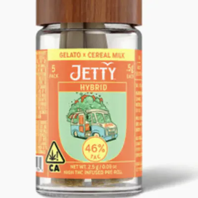 Jetty Preroll High THC 2.5g - 5pk Jar Gelato x Cereal Milk