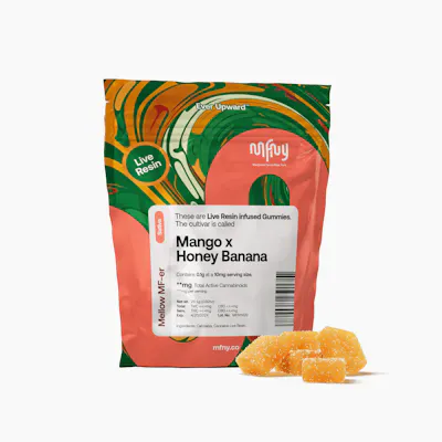 Terpene-rich edibles at an even tastier price. Introducing our live resin Strawberry Mango x Honey Banana gummies. These vegan gummies are infused with MFNY’s single-source, in-house produced Honey Banana live resin. We start with fresh-frozen flower buds, then use the hydrocarbon extraction method (plus years of experience and scientific precision) to deliver the purest plant extract. An extract that showcases the cultivar's naturally-produced, full-spectrum cannabinoids and remarkable natural terpenes. Honey Banana is known for its flavors of strawberry, banana, and sweet honey. To complement the Honey Banana cultivar, we add the minimum amount of sugar, plus strawberry and mango flavors. Lineage: Strawberry Banana x Honey Boo Boo Effects: Mellow (Usual) Terpenes: Myrcene, Caryophyllene, Limonene