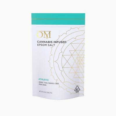 OM Living’s Recovery Bath Salt combines a therapeutic salt blend with a balanced infusion of cannabis. Each 6.5‑ounce jar is formulated with a 1:1 ratio of THC to CBD, designed to support relaxation, muscle recovery, and skin nourishment during a warm soak.Info: