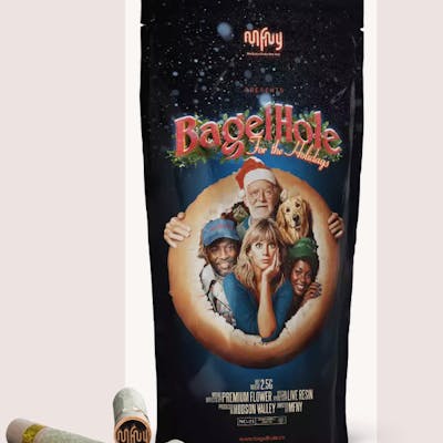 Cozy up to this potent pre-roll with a group of friends. You may have heard of hash holes (aka donut holes, snake holes, or wormholes). We call ours the BagelHoleTM, and it’s the gift that keeps on giving. Each BagelHole boasts 2 grams of premium MFNY Candy Rain flower in a perfect, hand-made XL pre-roll with a .5 gram cylinder-shaped roll of our premium Candy Rain Live Rosin extract down the center (kind of like the cream cheese inside a freshly baked bagel). Having our real-deal Candy Rain Live Rosin extract inside this pre-roll results in a higher level of potency, and aromas of sweet candy and Zkittles produced by the cultivar to bring an even more relaxing, euphoric, and creative experience to any group of friends. That means you have the ultimate feel-good holiday hit on your hands.