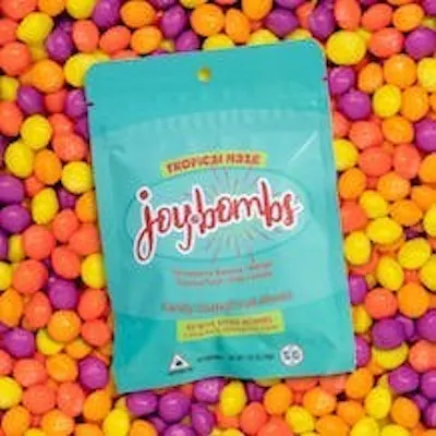 Take your taste buds on vacation with Tropical Haze Joy Bombs! Every pouch includes an explosive mix of sweet, satisfying flavors: Passion Fruit, Mango, Strawberry Banana, & Piña Colada! Joy Bombs Candy-Coated Fruit Chews are purposefully dosed to help you dial in or stack the milligrams and effects that you want – but good luck trying to eat just one! With 2.5mg THC in each bite-sized piece, you can micro-dose for days or nom the whole pouch for a 100mg adventure! Perfect for sharing, Joy Bombs’ signature sugary shell means they'll melt in your mind, but not in your car or pocket. They’re the UNGUMMY you’ve been waiting fo