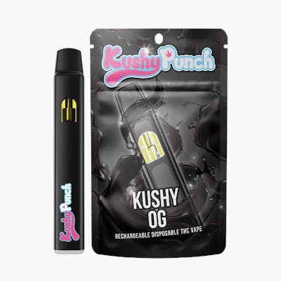An O.G. punch of our all-new Kushy O.G. disposable vape! 1G of amazing all-natural great tasting flavor! USB-C rechargeable so you can always KEEP IT KUSHY!