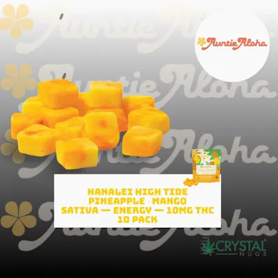 Indulge in our vegan Cannabis fruit gummies that deliver a 10mg dose of Aloha vibes wrapped in the unique flavors of the islands. Our kitchen of flavors include Lilikoi (Passion Fruit), Guava, Pineapple, Mango, Coconut, and more. -- Looking for a burst of Aloha vibes to match the swell hitting the surf in Hanalei? Make the drop and pull into an onolicious swirl of pineapple and mango. We’ll leave you with enough energy to paddle out for more! -- PINEAPPLE MANGO SATIVA — ENERGY 10MG THC | 0MG CBD PER SERVING TOTAL OF 10 SERVINGS TOTAL 100MG THC PER PACKAGE