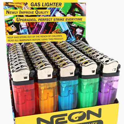 Neon plastic lighter. clear assorted colors.