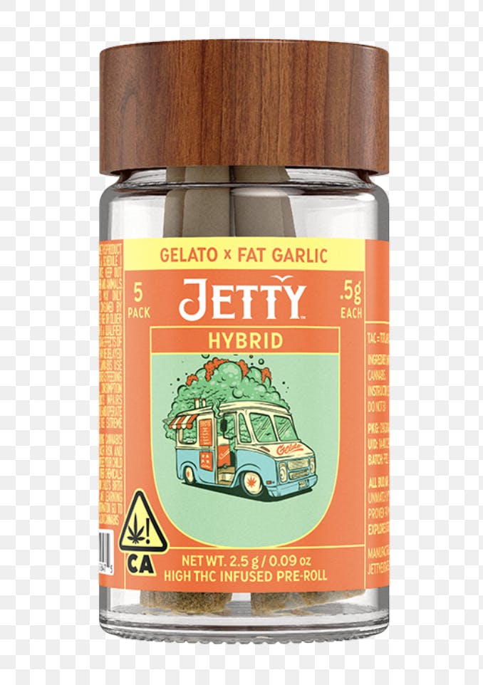 Jetty Pre-Roll High THC Infused 5 Pack (2.5g) Gelato x Fat Garlic