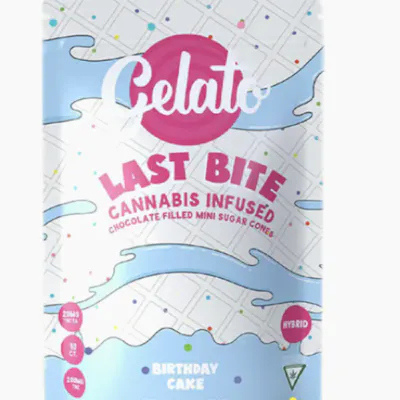 Enjoy our NEW Last Bites feature a birthday cake white chocolate filling, birthday cake white chocolate dip, and a special sprinkle coating.?This 10ct of 10mg hyrbid dosed cones are perfect for anyone looking for a sugary snack with a crunch. They are best enjoyed topped with a scoop of your favorite ice cream flavor.