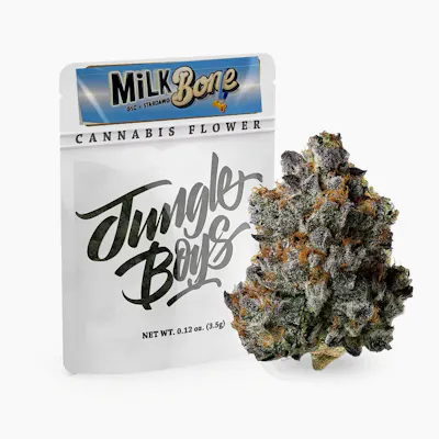 Milk Bone is a hybrid weed strain made from a genetic cross between GSC and Stardawg. Bred by Jungle Boys, Milk Bone is 23% THC, making this strain an ideal choice for experienced cannabis consumers. Leafly customers tell us Milk Bone effects make them feel talkative, giggly, and hungry. Medical marijuana patients often choose Milk Bone when dealing with symptoms associated with stress, anxiety, and depression.