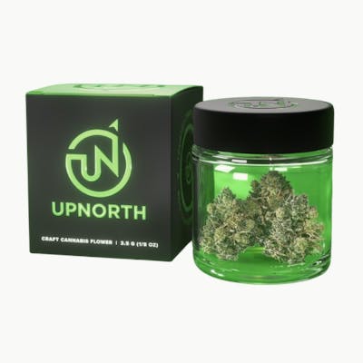 The UpNorth “Blue Zushi” 3.5 g pre‑pack is a hybrid flower with sweet berry/blueberry and vanilla top notes, layered over a kush/diesel funk base. With THC around ~22% in the listed batch, it offers a balanced yet robust experience: a cheerful, euphoric start followed by calming body effects. Ideal for relaxing in the afternoon or evening when you want flavour and effect without full sedation.