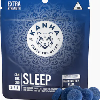 150mg CBN x 100mg THC x 50mg CBD per bag Dreams are sweeter with our Marionberry Plum 3:2:1 SLEEP blend. Formulated with CBN, THC, CBD, enhanced with antioxidant rich goji berry and sweetened with honey which contains tryptophan, these sleep gummies gently relax you while melting away the day's stress for a deep, restorative slumber. Instructions: Eat 1 gummy. Onset starts around 5-15 minutes. Wait 60 minutes for full effect. Keep in a cool, dry place. Avoid temperatures over 75°F. Ingredients: Tapioca Syrup, Cane Sugar, Water, Gelatin, Agar, Locust Bean Gum, Carnauba Wax, Natural Flavor, Citric Acid, Malic Acid, Natural Color, VESIsorb Nanotechnology, Natural Indica Terpenes