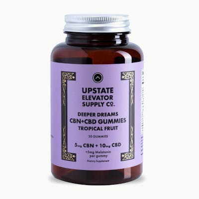 Deeper Dreams CBN+CBD Gummy, 15mg This is a new low for us: we took our Upstate Elevator Deep Dreams gummies even deeper. We kept our same botanical blend of 10mg of CBD isolate and 5mg of melatonin and combined it with 5mg of sleep-friendly CBN to make an even more effective nighttime supplement. You get the same delicious fruit flavor as always, now with a multi-cannabinoid entourage effect that helps promote an even deeper and more sound sleep*.