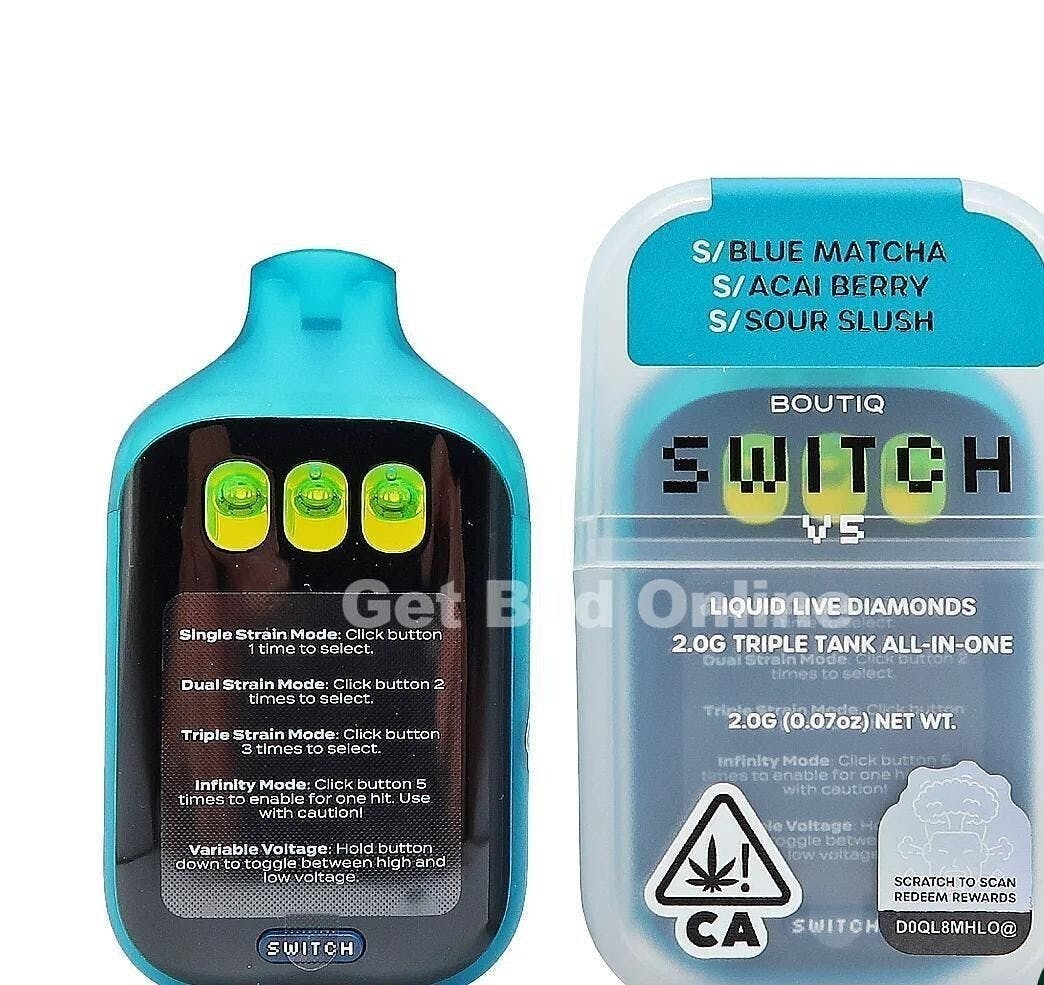 Boutiq Switch V5 2g Disposable Vape – Blue Blast + Chemdawg + Biscotti
