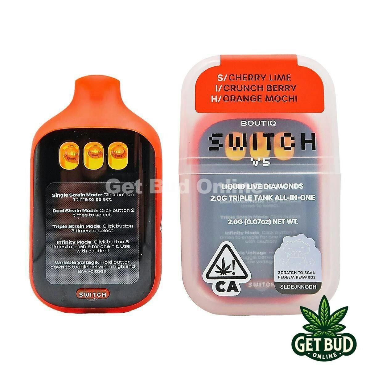 Boutiq Switch V5 2g Disposable Vape – Cherry Lime + Crunch Berry + Orange Mochi