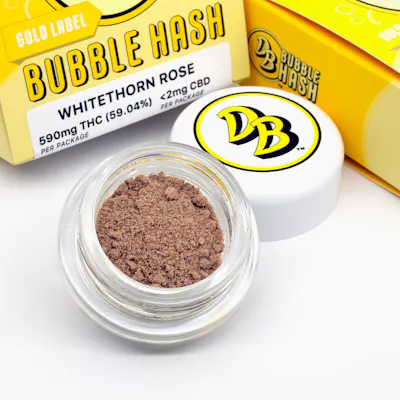 Whitethorn Rose Cold Water Hash from Double Bubble is a solventless expression of one of Northern California’s most celebrated cultivars. Expect a vibrant terpene profile with bright citrus, floral sweetness, and subtle tropical fruit notes layered over a smooth, clean finish. Crafted using ice water extraction to preserve the full spectrum of the plant, this hash delivers a balanced, flavorful experience that highlights both aroma and effect.