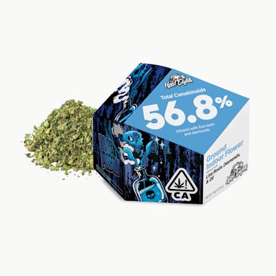 Diamond, Rosin & Oil Infused Pre Ground Flower (Shake) for a total weight of 3.5g - Blue Poison Flower with Blueberry Infusion