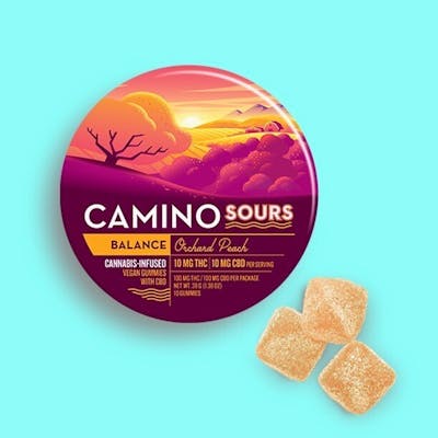 Camino Sours Gummies - Orchard Peach (Balance/Hybrid) 1:1 THC:CBD (10 pcs)
