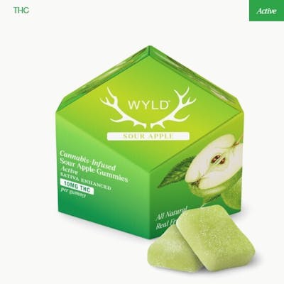Wyld’s mouth-watering Sour Apple gummies are infused with THC and Sativa terpenes for a vibrant, uplifting high.