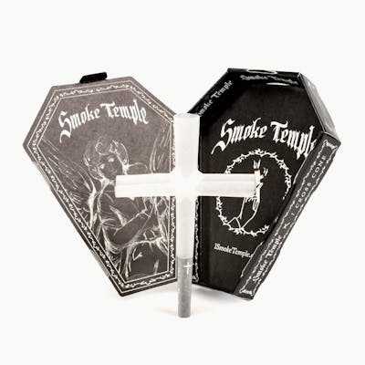 Style AND substance. The easy-to-fill Smoke Temple Cross Cone is where art and innovation meet to create the perfect party pass-around joint. Take your session to a higher level! Key Features: Each pack contains 1 mini cross cone (84mm / 1g capacity) Unique three-tipped cross joint cone design Individually packed in collectible coffin boxes Perfect for solo sessions or group smoking