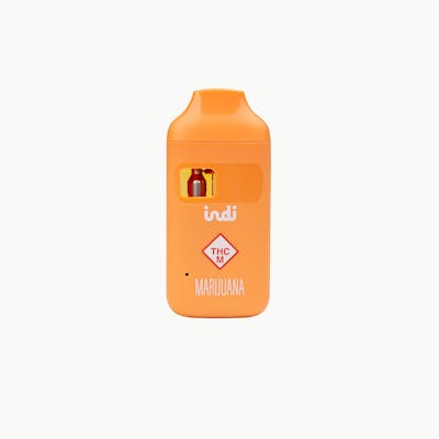 This discreet, fruit forward vaporizer has notes of peach cobbler and vanilla ice cream. Indi vapes utilize ultra refined, high potency distillate with botanically derived terpenes and fruit flavors. Primary terpenes: D-Limonene, Linalool, alpha-Humulene