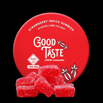 Strawberry Indica 10 PIECES | 10MG THC EACH Our sugar-covered Strawberry Indica Gummies are infused with the rich, succulent flavor of ripe strawberries that provide a mouthwatering burst of berry goodness in every bite. Infused with Indica-leaning cannabis-derived terpenes, these gummies provide a relaxing and soothing experience and are made from scratch with a perfect balance of pectin and gelatin for maximum flavor and an ideal gummy texture. Each package contains 100mg of THC, with each individual gummy delivering 10mg of THC. With their perfect square shape, these gummies are designed for a satisfying bite every time and offer the potential to be portioned to a more personal dosage. Enjoy the comforting effects of our Strawberry Indica Gummies and elevate your relaxation. Ingredients Sugar, corn syrup, gelatin, pectin, citric acid, natural & artificial flavor, and color Effects Deep Relaxation: Experience a profound sense of calm and tranquility. Stress Relief: Helps to ease anxiety and stress, promoting mental relaxation. Body Comfort: Provides soothing relief for muscles and joints, perfect for unwinding. Micro-Dosing Flexibility: Perfect for customized dosing to suit your needs.