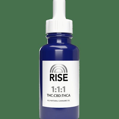 RISE 1:1:1 Tincture is formulated with 100% hemp seed oil and with equal parts of THC, CBD, and THCA. Each bottle is made with 500mg total cannabinoids (166mg THC, 166mg CBD, 166mg THCA), and contains 30mL of tincture with 1 serving being equal to 1mL (1 full dropper) that will provide 5.55mg THC, 5.55mg CBD, and 5.55mg THCA. Each dropper is metered to allow for accurate dosing every single time. RISE 1:1:1 tincture does not contain any nut oil and is the only tincture currently available made with hemp seed oil (refined/golden) to offer a 100% cannabis based tincture. RISE remains focused on making a positive impact in the lives of people through continuous research efforts, the development of innovative medicines, and characterization of disease specific cannabis-based treatment plans. We are committed to being the leader in medicinal cannabis, and are dedicated to shaping the future of the industry by providing clinically relevant alternative wellness options.