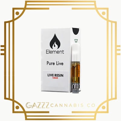 510 Vape Cartridge 1G Free of distillate, botanical terpenes and additives, Element Pure Live cartridges contain 100% live concentrate. Both Live Resin and Live Rosin Pure Live cartridges offer strong, strain-specific flavor profile with a full-spectrum experience.